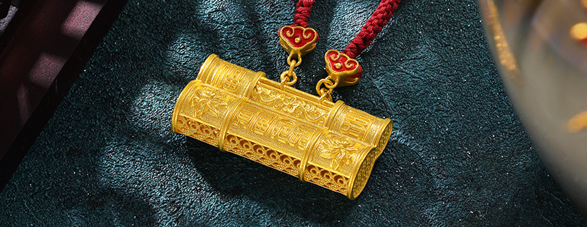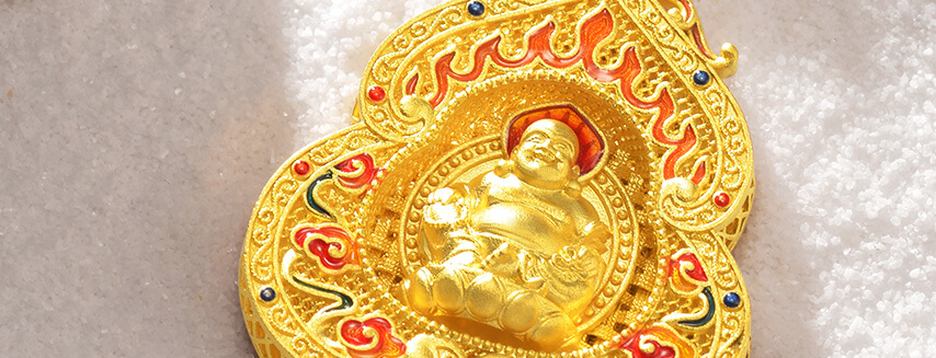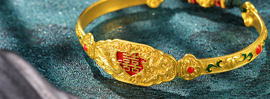 在山河集,看中国《大婚》,听《禧娃》嬉闹,悟佛教之《真善美》,《禧传承》摸中国之文脉。老手工黄金器饰耐脏污性能极佳,不容易留下指纹汗印,不易出现划痕,经久耐用,用料密实。视觉与佩戴效果上更具分量与质感。因为是手工制作,每一件金器是独一无二的。即使同一个款式,其表面处理都会有细微的不同。